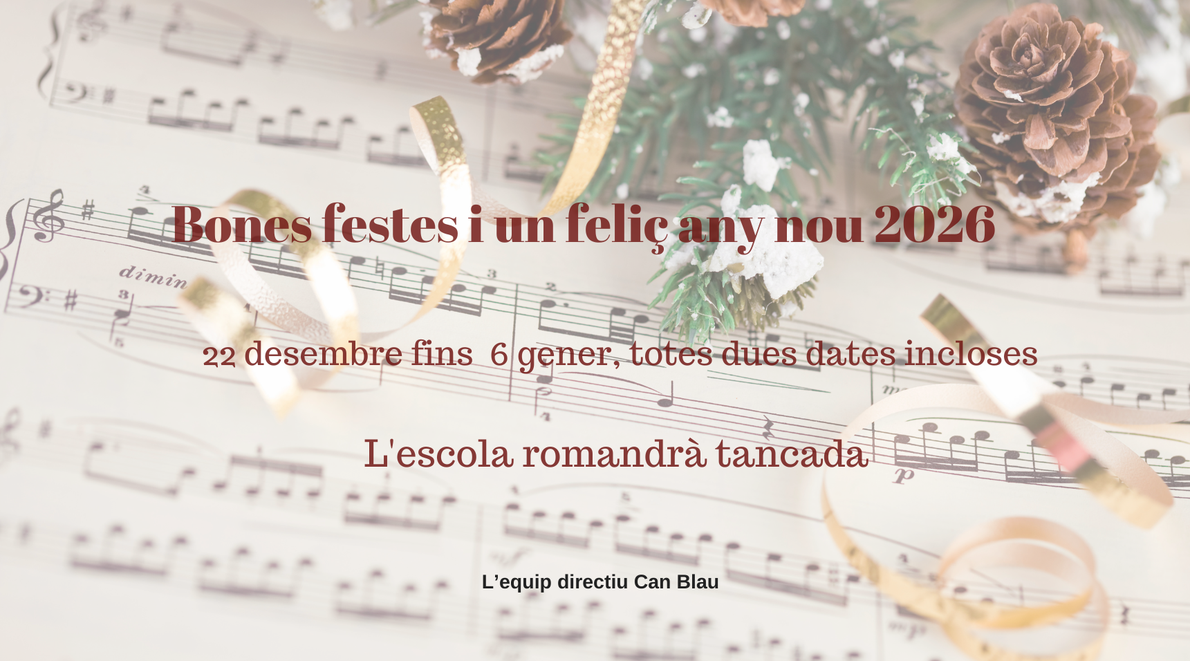 Bones festes i un feliç any nou 2026 – 22 desembre fins 6 gener, totes dues dates incloses L’escola romandrà tancada