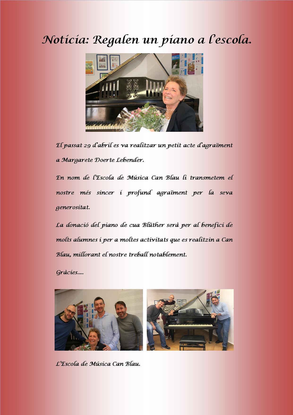 Inicio > Eventos > Noticia: Regalen un piano a l’escola.