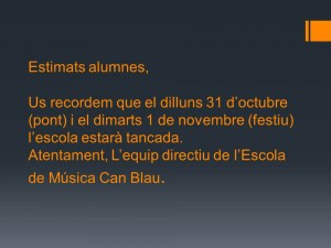 HORARI 16-17 pulsa per visualitzar *Per a l’horari de les classes individuals d’instrument, el professor o professora de la especialitat es posarà en contacte amb l’alumne. *INFORMACIÓ PAGAMENTS. Pulsa per visulitzar