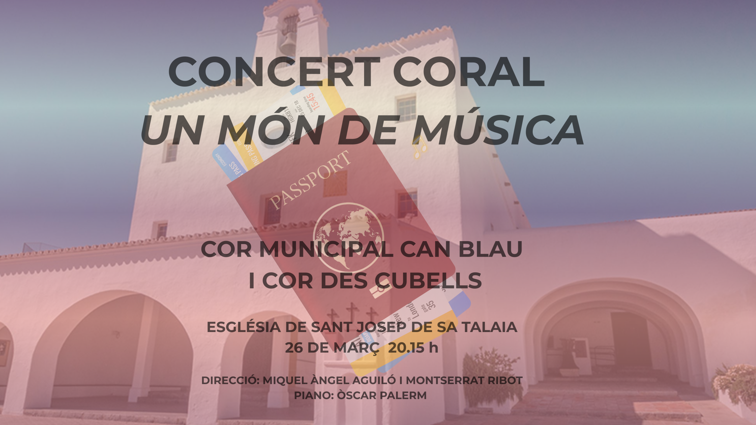 CONCIERTO CORAL «UN MÓN DE MÚSICA» COR MUNICIPAL CAN BLAU I COR DES CUBELLS ESGLÉSIA DE SANT JOSEP DE SA TALAIA 26 DE MARÇ 20.15 h