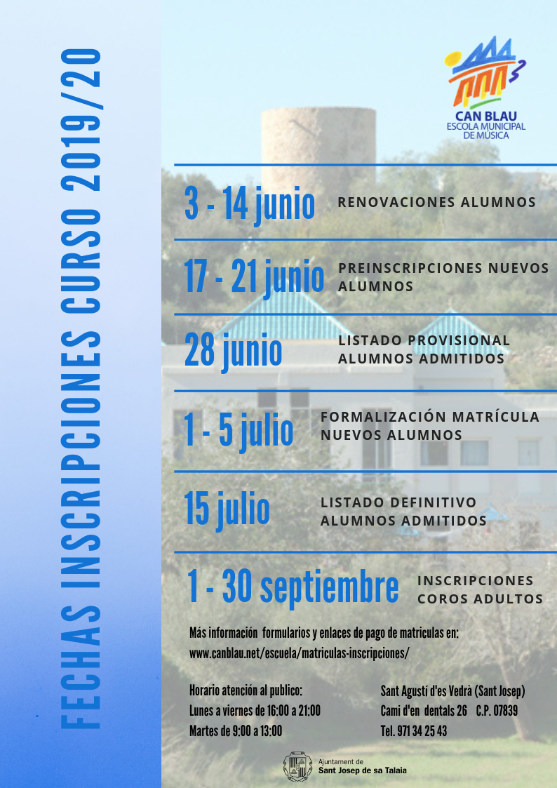 FECHAS INSCRIPCIONES CURSO 2019/20