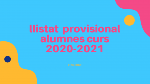 Clica para ver el listado sobre el enlace azul listado provisisonal curso 20-21 Si estas en el listado y eres un nuevo alumno, ahora es el momento de pagar la matricula que formaliza que estas interesado en la plaza. Aquí tienes el enlace para pagar la matricula https://www.santjosepdesatalaia.es/autoliqCanBlau_ca.aspx